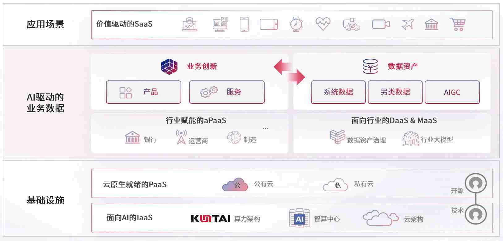 数字时代,,围绕企业数字化转型的关键要素,,z6com尊龙数码开创性的提出数云融合战略和技术体系框架,,,,着力在云原生、、、数字原生、、、、AI原生和信创产业上架构产品和服务能力,,,为处在不同数字化转型阶段的快消零售、、汽车、、、、金融、、、医疗、、、、政企、、、教育、、、运营商等行业客户提供泛在的敏捷IT能力和融合的数据驱动能力,,构建跨界融合创新的数字业务场景和新业务模式,,助力企业级客户建立面向未来的核心能力和竞争优势,,全面推动社会的数字化、、智能化转型升级。。。。